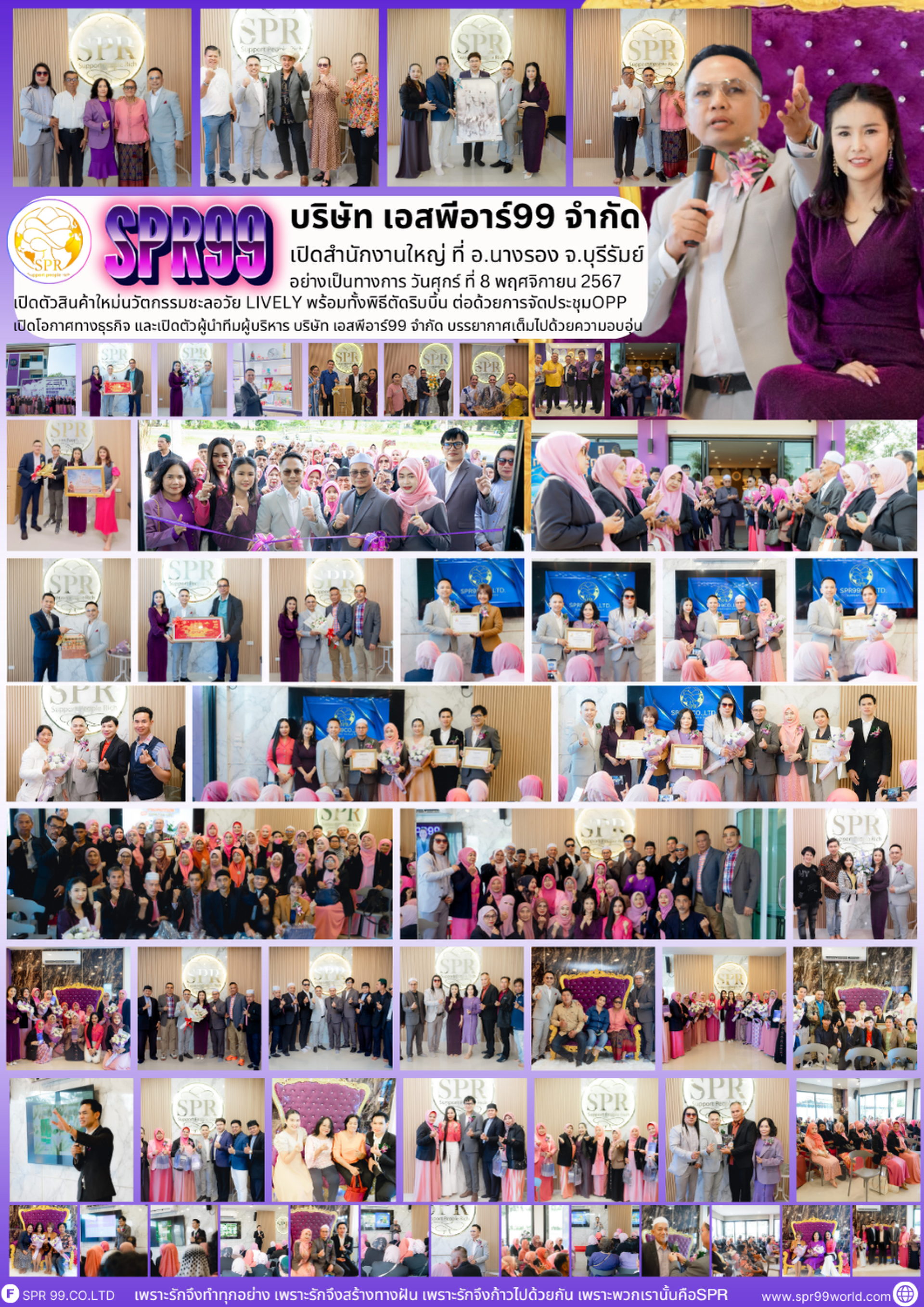 พร้อมทั้งเปิดตัวสินค้าใหม่นวัตกรรมชะลอวัย LIVELY พิธีตัดริบบิ้น ต่อด้วยการจัดประชุมOPP เปิดโอกาศทางธุรกิจ และเปิดตัวผู้นำทีมผู้บริหาร บริษัท เอสพีอาร์99 จำกัด